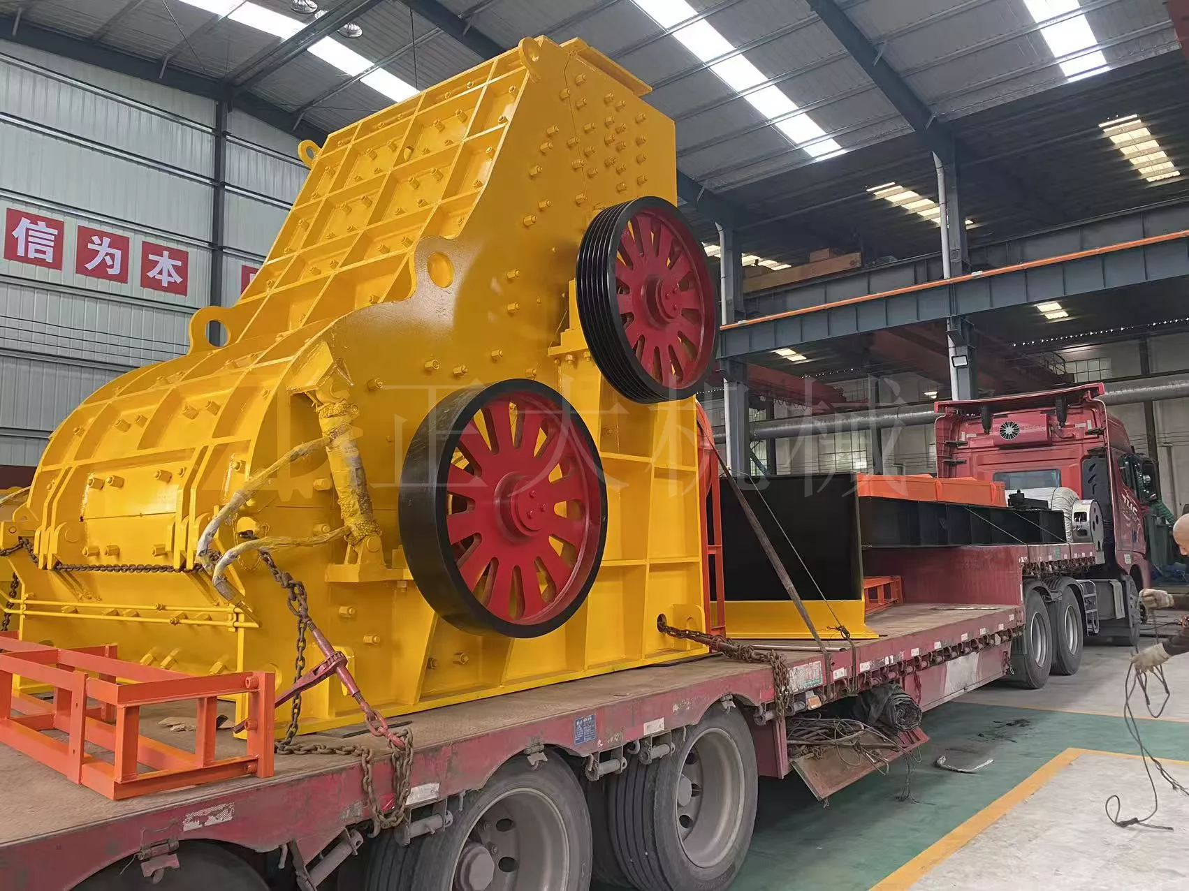 河南正大的双级粉碎机凭借“双转子双重破碎”核心设计,能轻松应对鄂尔多斯当地常见的煤炭、矿石等硬质物料,破碎效率比传统设备提升30%,且出料粒度均匀,完全适配当地能源加工与建材生产的需求。现在是2025年10月11日下午,身披黄色外壳的双级粉碎机,稳稳矗立在装载区,等候着装车号令。这是来自车间装车现场图片: